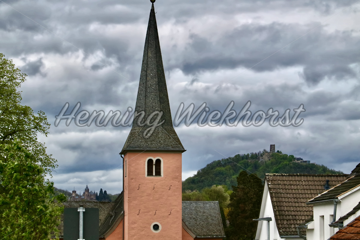 Burg und Schloß hinter der Kirche von Niederbachem in Wachtberg bei Bonn.