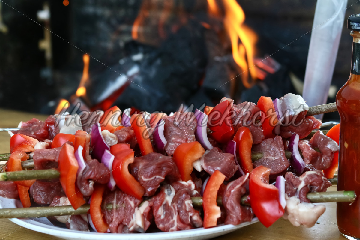 Fleisch-Sticks vor dem Grillfeuer