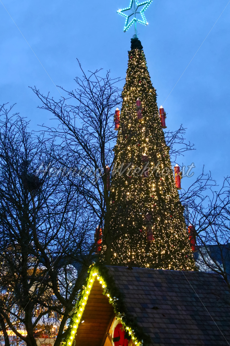 Abendlicher Baum auf dem Weihnachtsmarkt