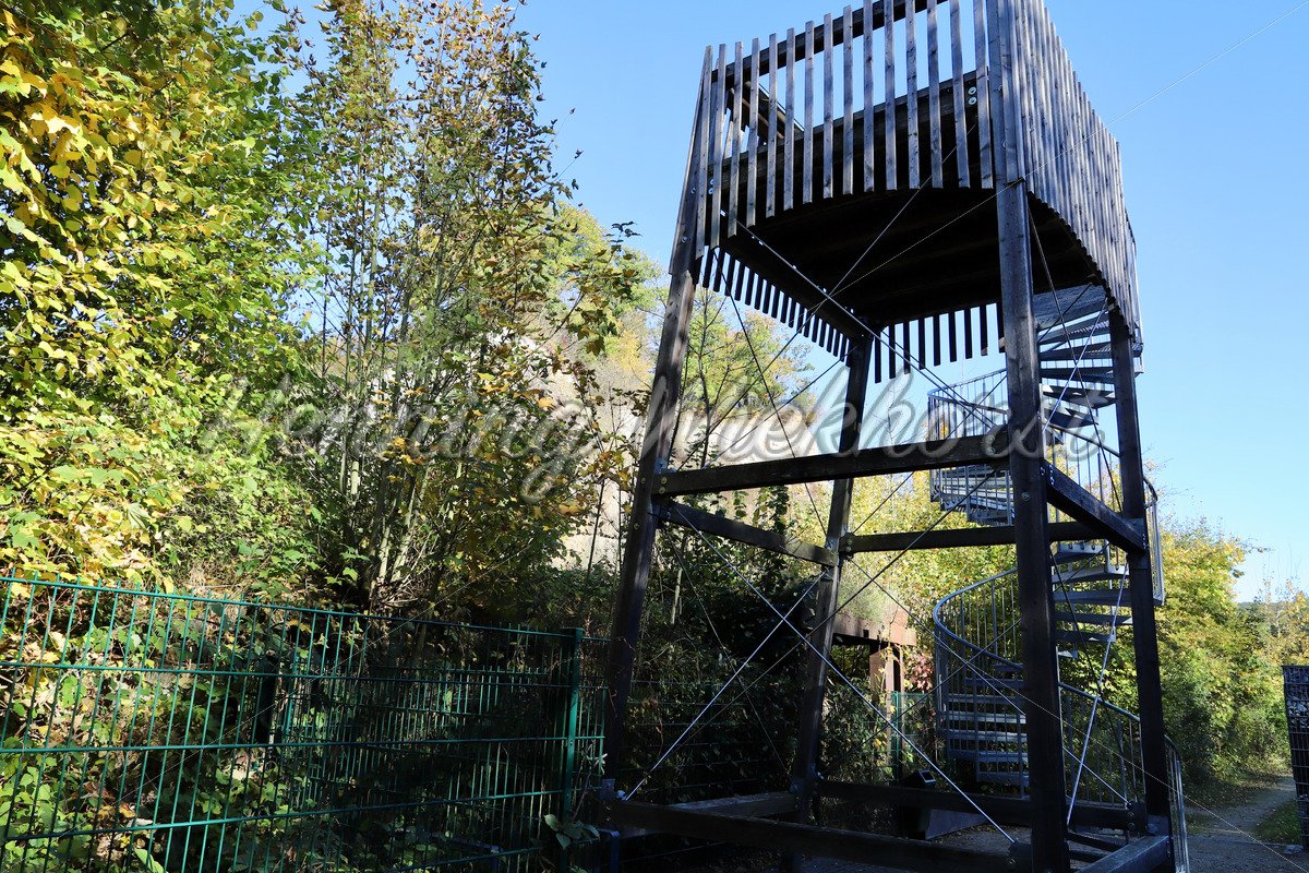 Aussichtsturm Dächelsberg erlaubt die Beobachtung von Flora und Fauna des ehemaligen Steinbruchs.