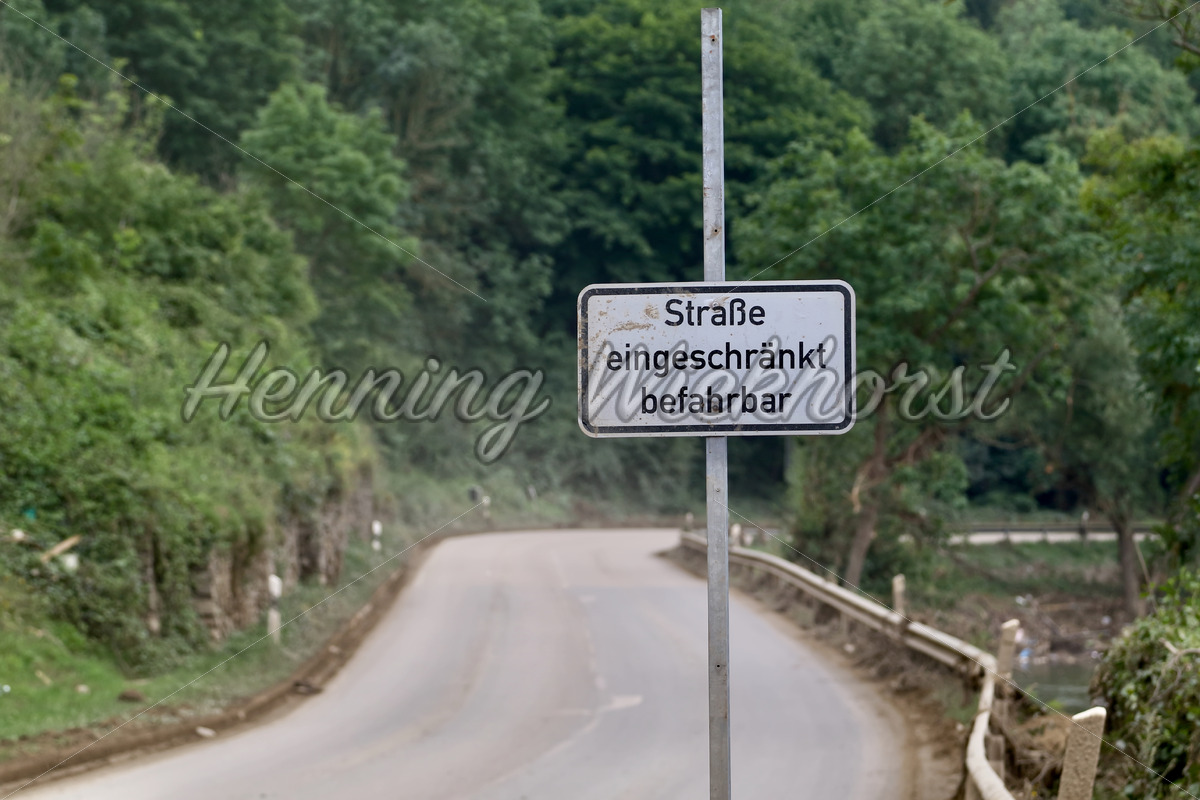 Befahrbare Strasse im Ahrtal zwischen Kreuzberg und Ahrbrück drei Wochen nach der Flutkatastrohe vom 14. Juli 2021