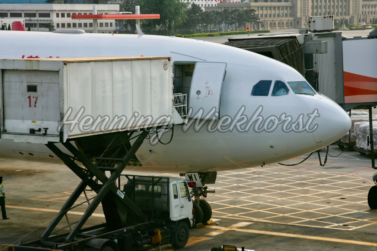 Catering für ein Flugzeug am Gate in Beijing, China