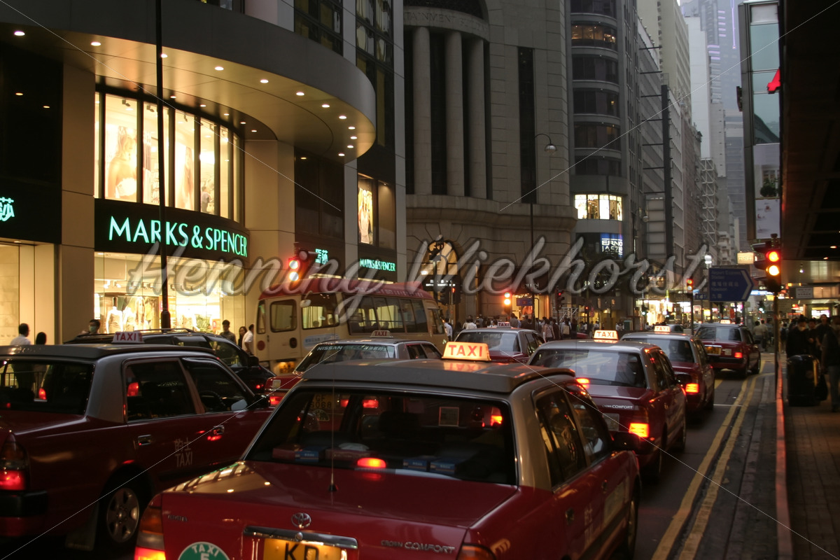Abendlicher Verkehr in Hong Kong, im Central-District