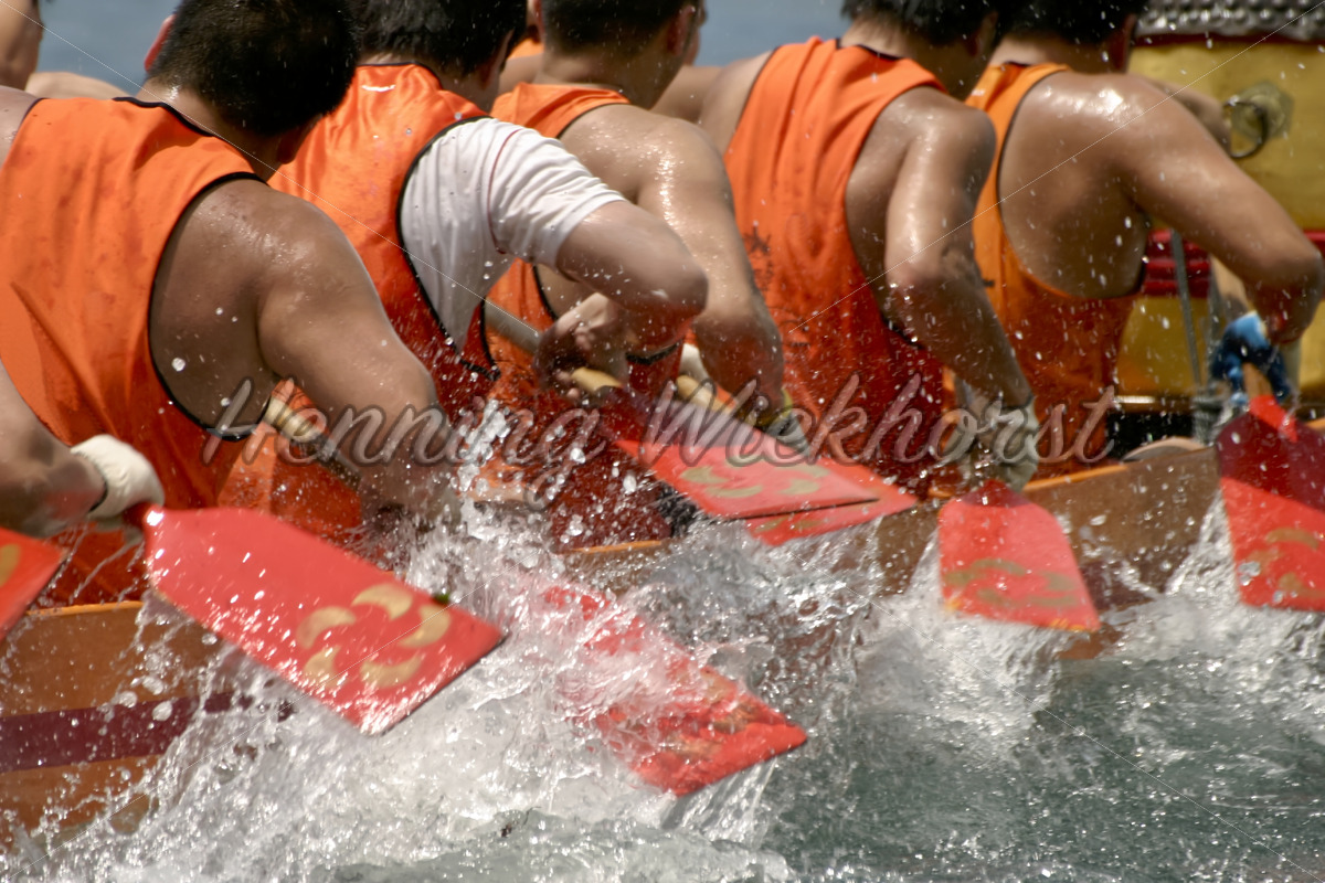 Nahaufnahme der Paddel beim Drachenboot-Rennen