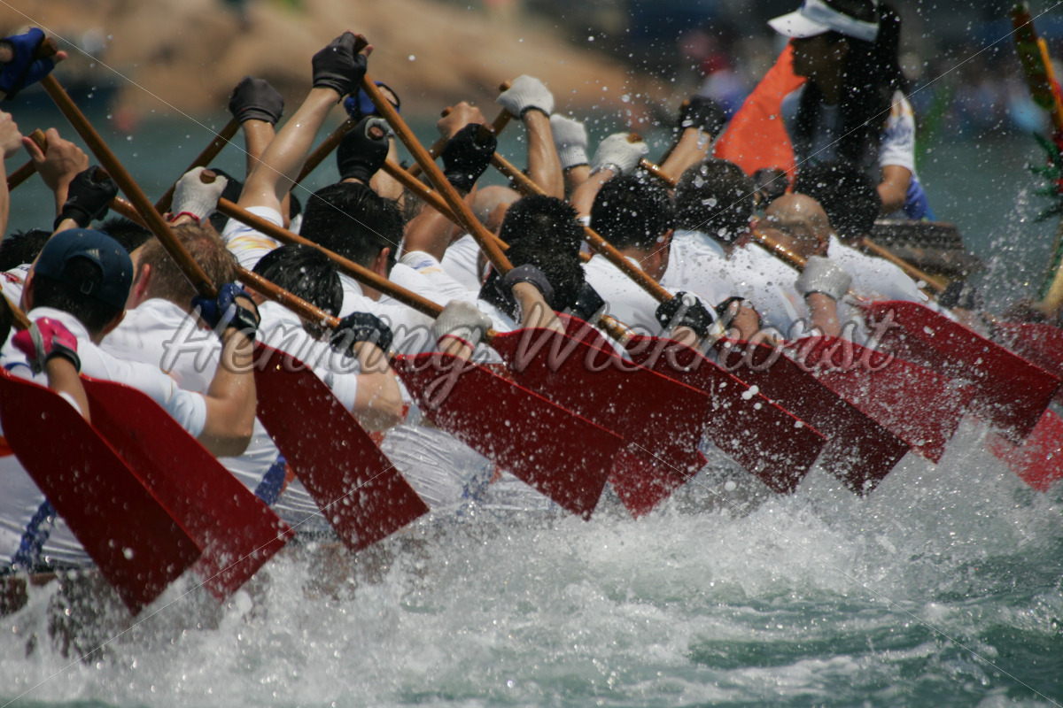 Drachenboot voll im Rennen