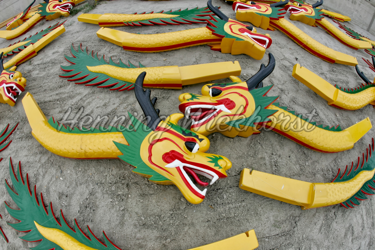 Drachenköpfe und Schweife für Drachenboote