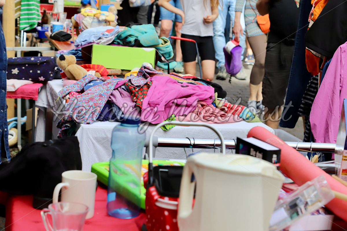 Grabbel-Tisch auf einem Flohmarkt