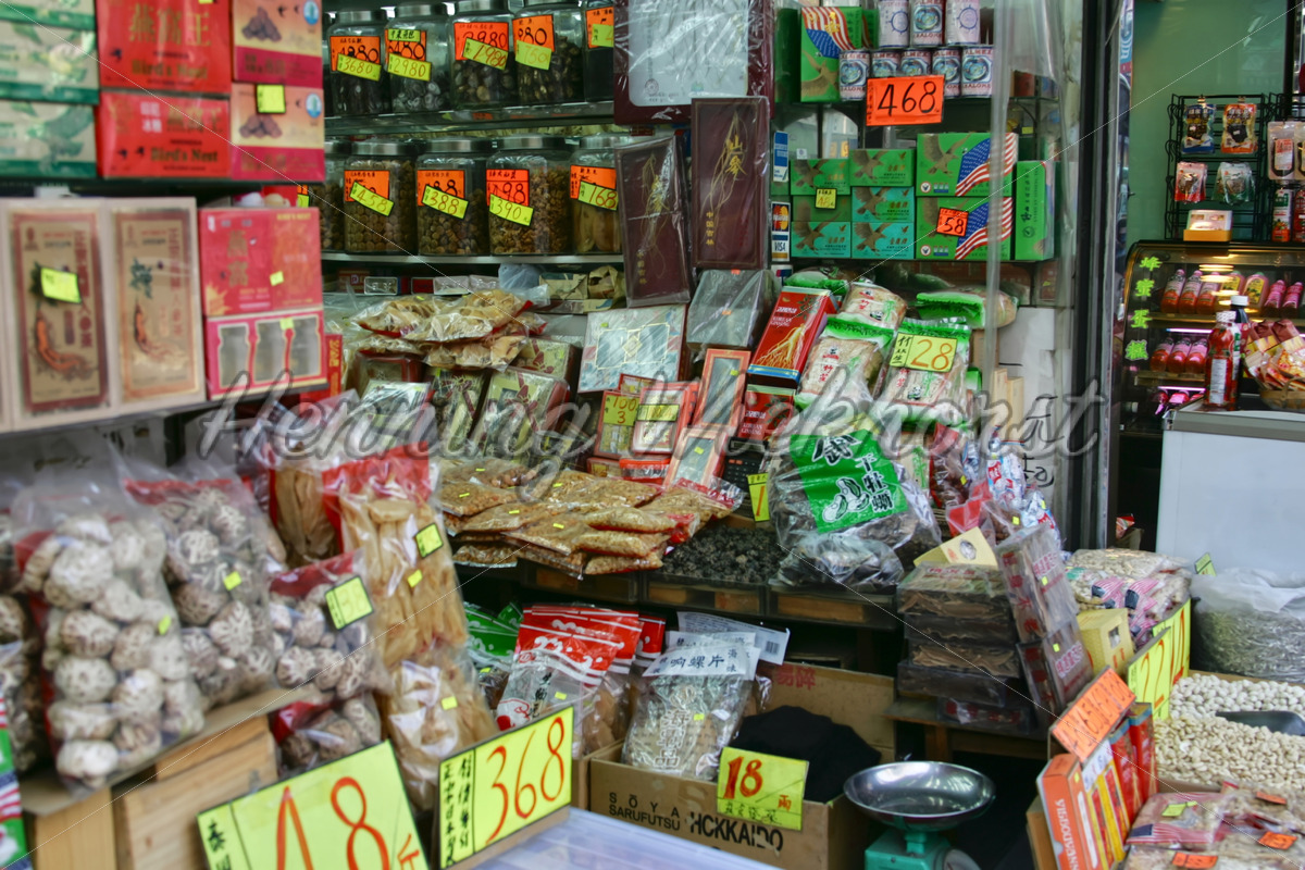 Laden für getrocknete Speisen in Jordan auf der Kowloon-Seite von Hong Kong