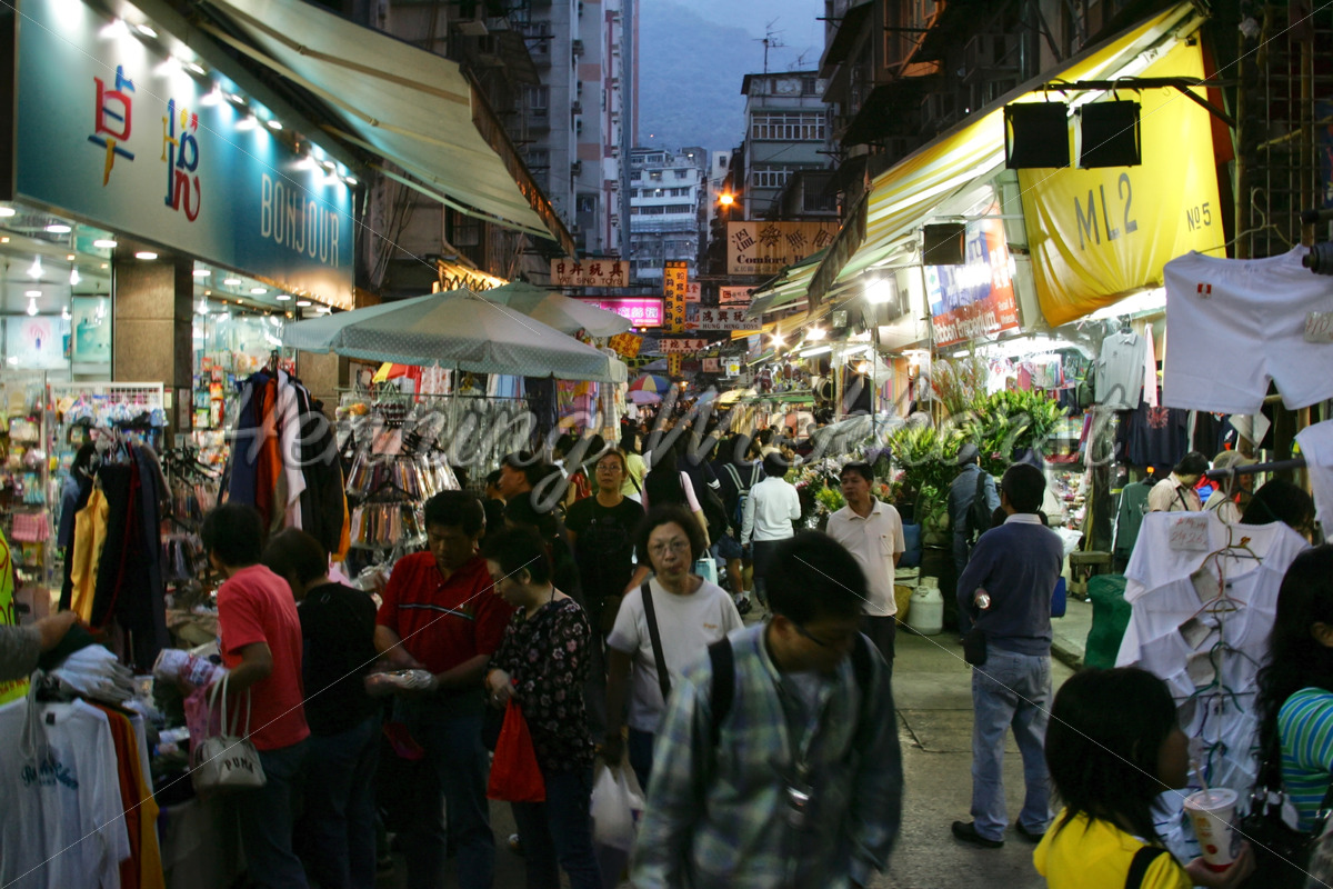 Reges Treiben auf dem Markt von Wan Chai auf Hong Island