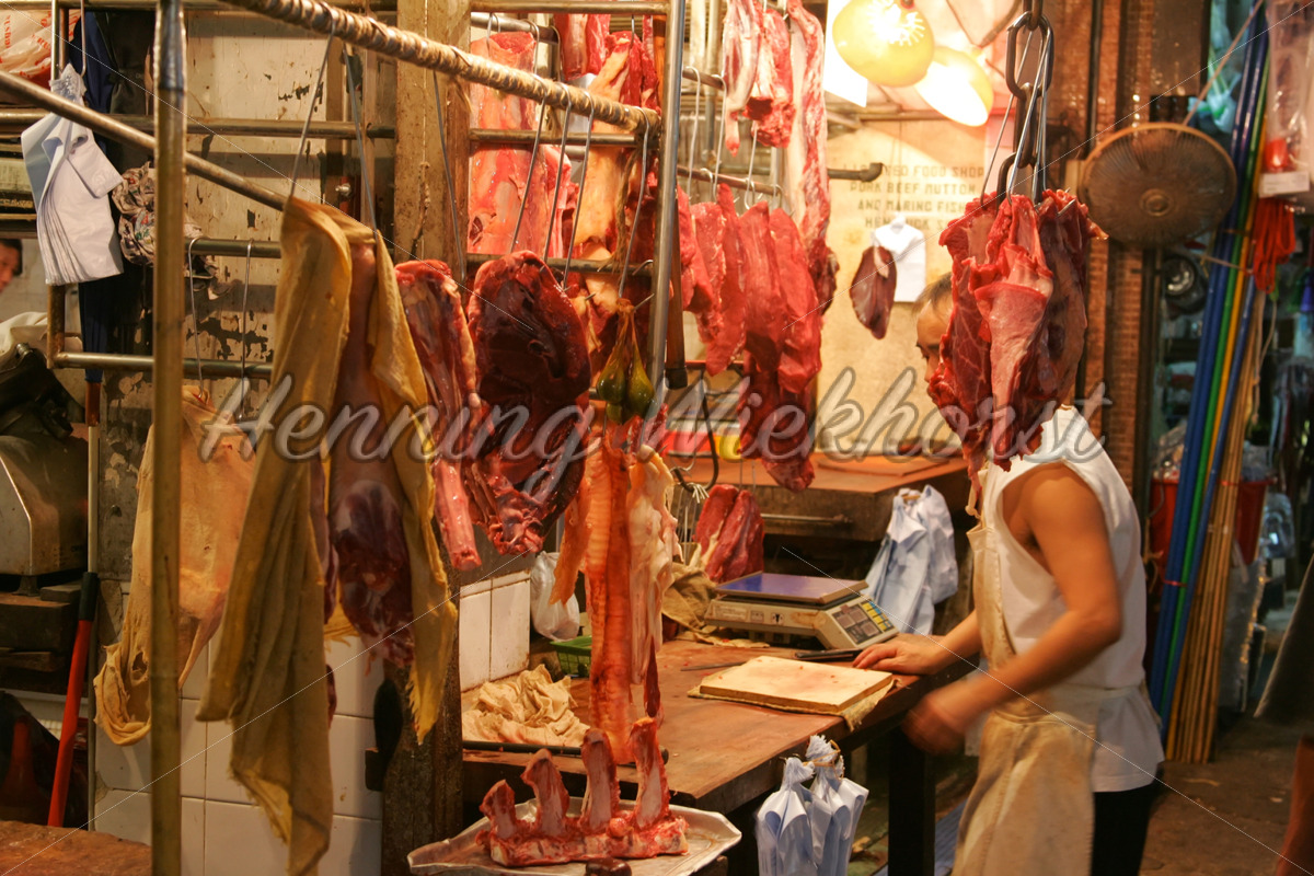 Metzger am Markt in Wan Chai auf Hong Kong Island