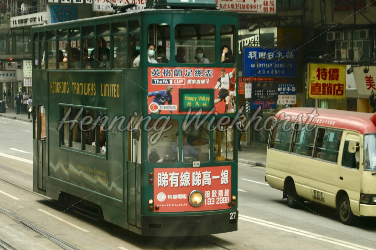 Altehrwürdige Hong Kong Tram – die Aufnahme entstand während der SARS Pandemie 2002 / 2003