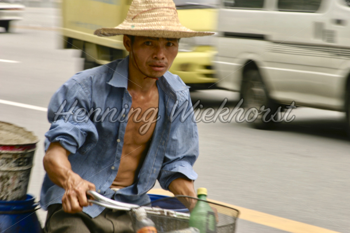 Der Radfahrer in China wurde vor 20 Jahren, unter der damals rechtlichen Lage auf öffentlichem Grund und Boden aufgenommen. Eine Model-Freigabe gibt es nicht. Eine redaktionelle Verwendung erscheint möglich.