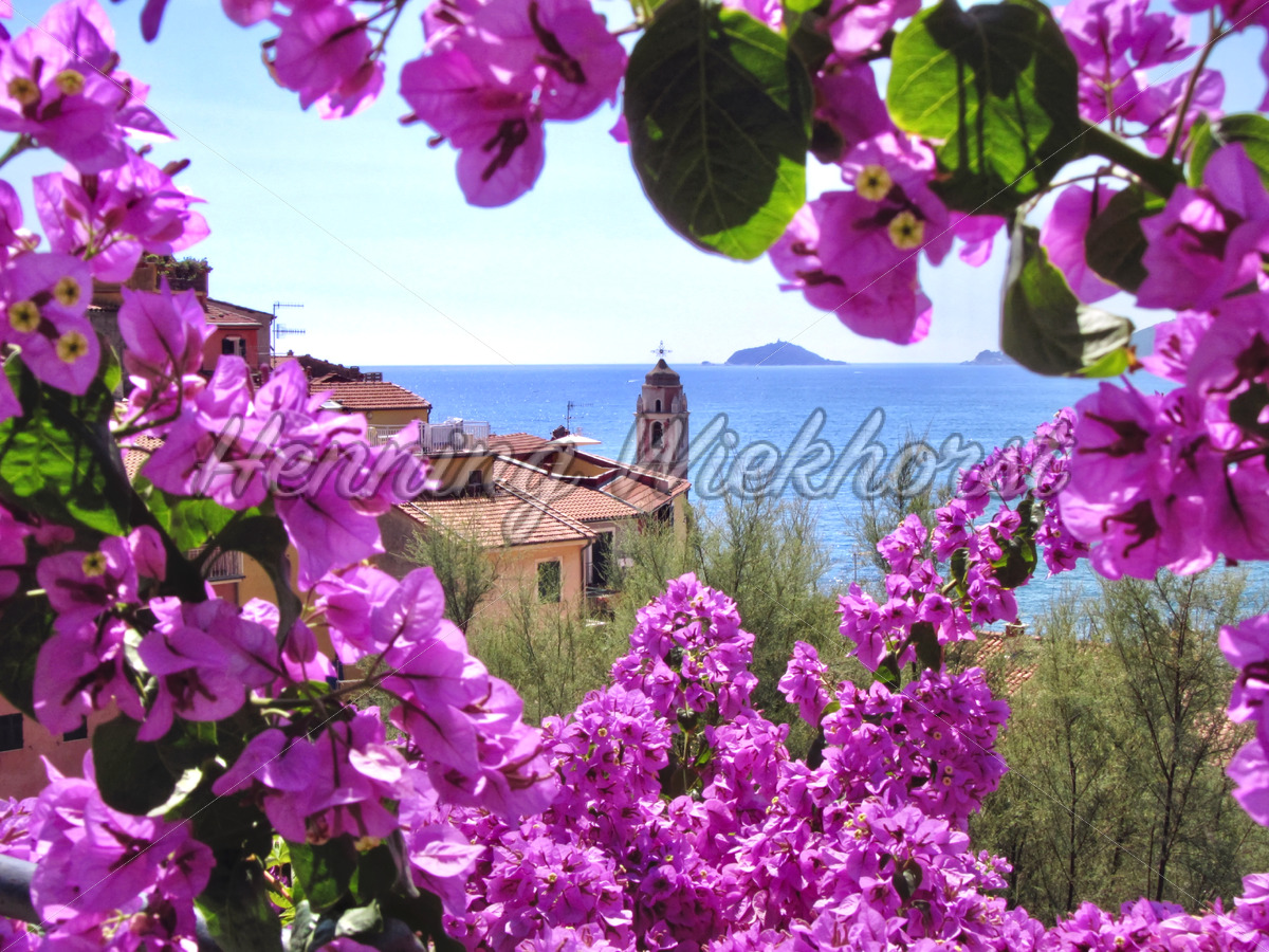 Das italienische Dorf Telaro in Blumen gerahmt.