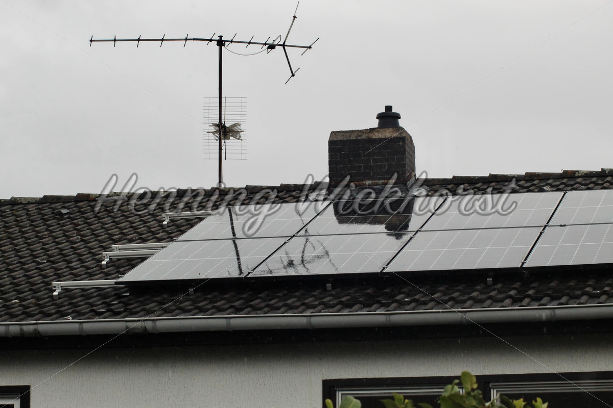 Solar-Panel und alte TV-Antenne auf dem Dach