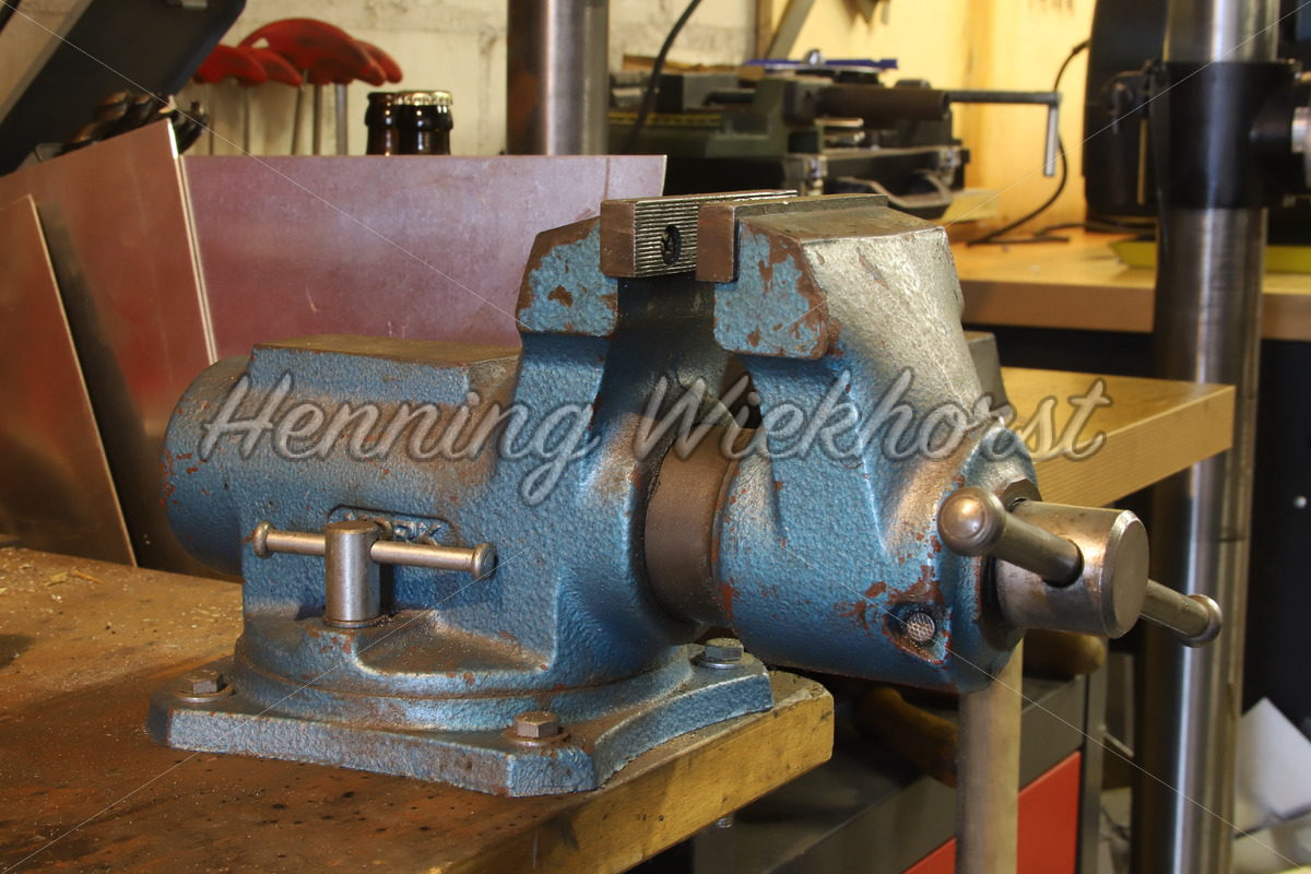 Schraubstock an einer Werkbank
