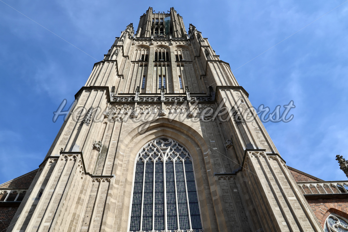 In den Himmel ragender Kirchturm der grossen Kirche von Arnheim.
