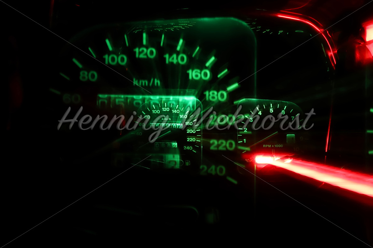 Kunstvoll beleuchteter Motorrad-Tacho: Bei dieser Aufnahmetechnik wird bei geöffnetem Verschluss “hinein gezoomt”. So entsteht ein “Exposions-Effekt”.