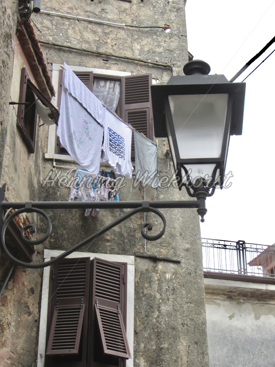 Laterne und Wäsche im Bergdorf / Carrara – Italien