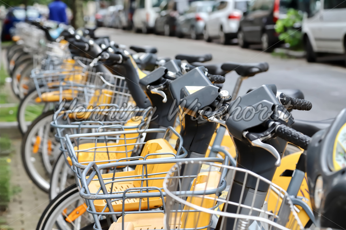 Leihfahrräder in Reihe