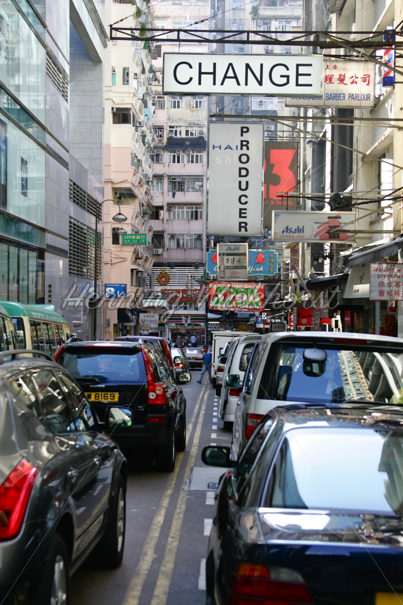 Dichter Verkehr in Causeway Bay auf Hong Kong Island