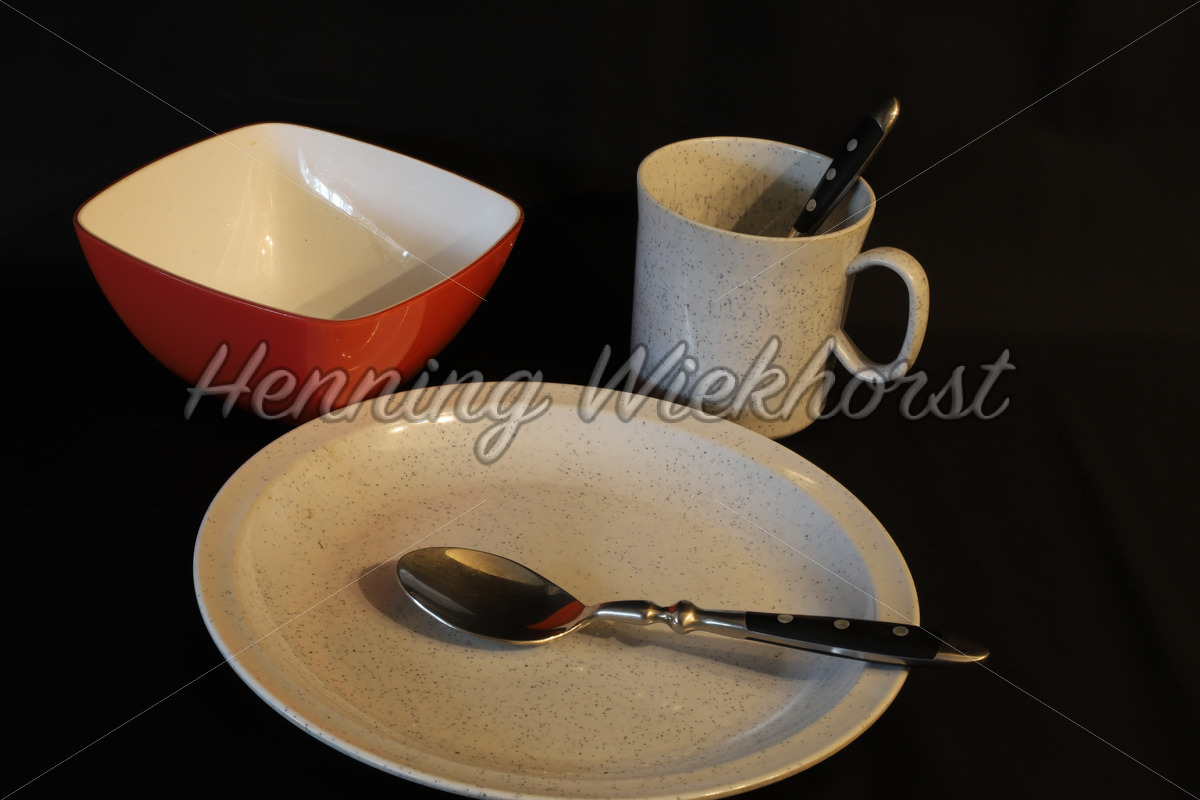 Plastik-Geschirr: Schale, Tasse und Teller