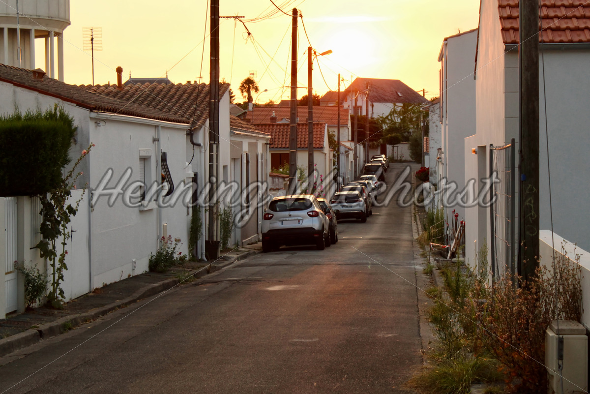 Seitenstrasse von La Rochelle im Sonnenuntergang – Frankreich
