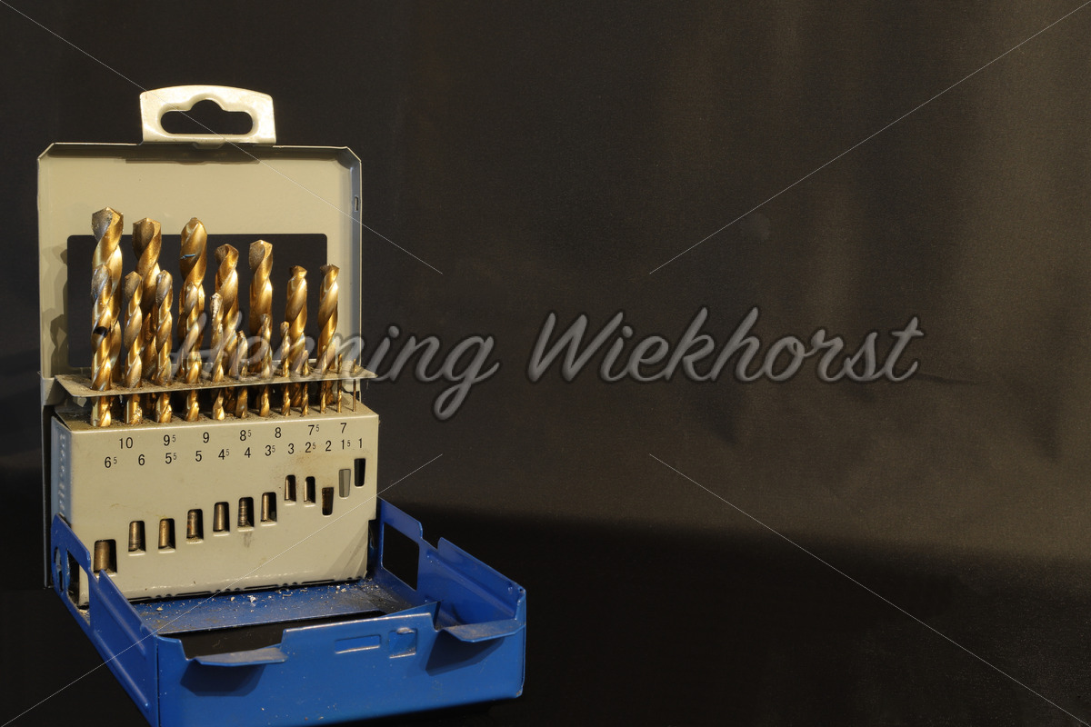 Sortiment von Bohrern vor schwarzem Hintergrund