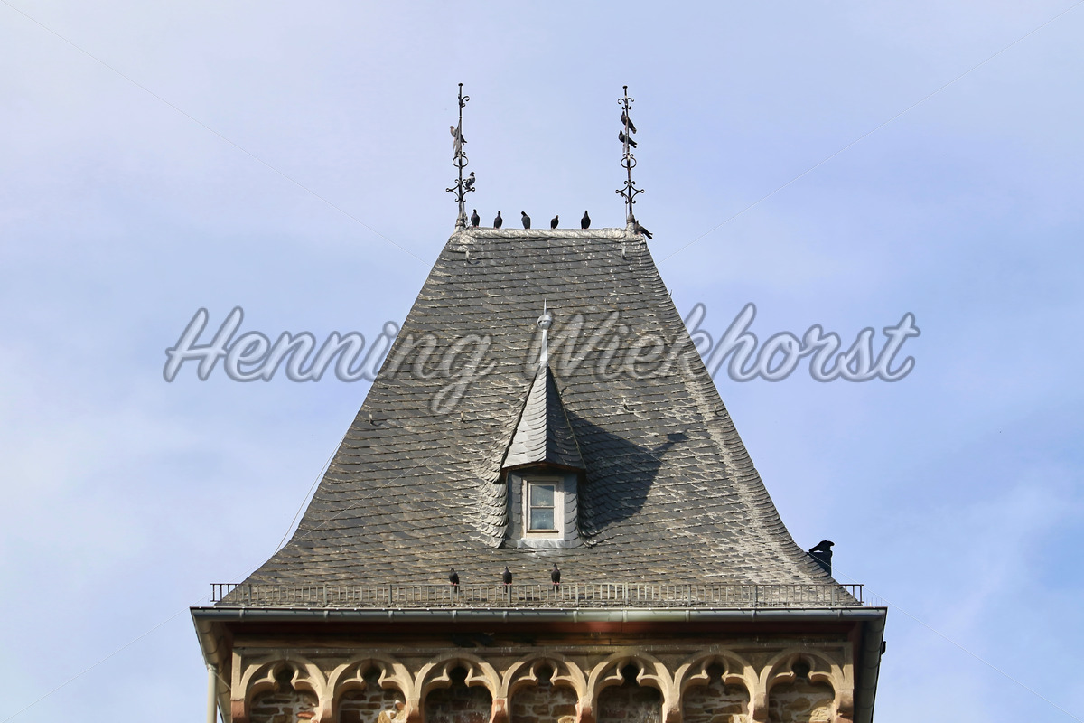 Tauben auf dem Turmdach in Bad Münstereifel / Deutschland