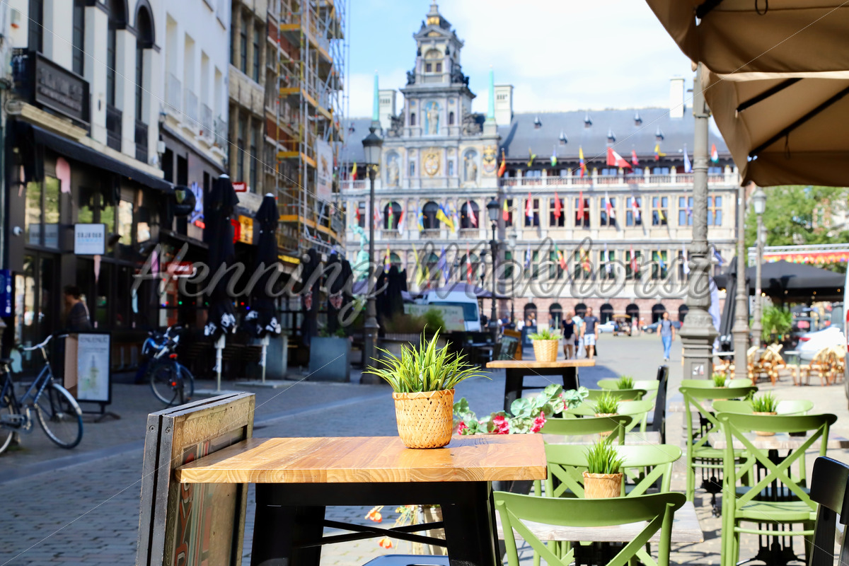 Tisch-Dekoration eines Restaurants in der Innenstadt von Antwerpen